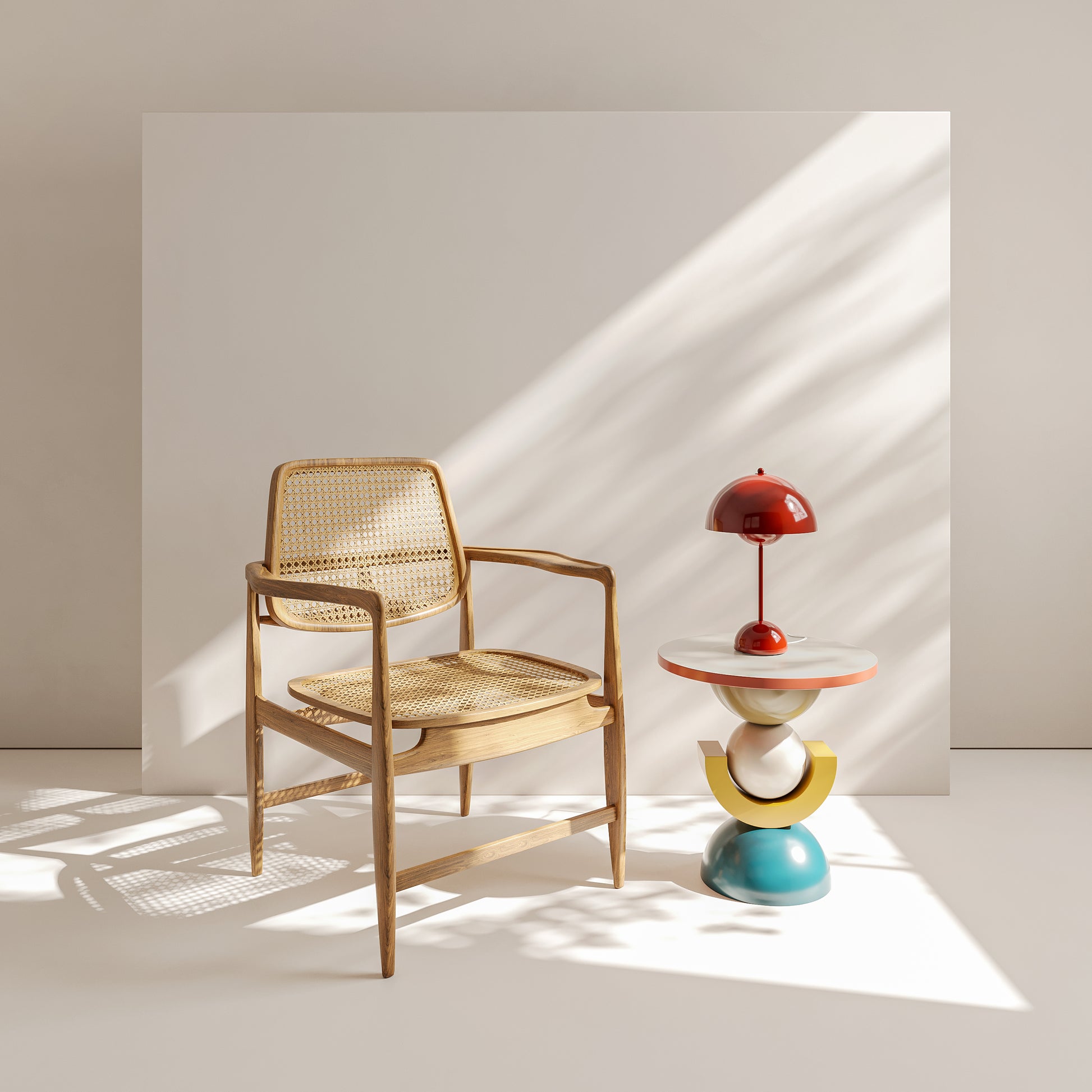 A peça evoca a justaposição dos corpos femininos retratados na pintura. As formas lisas e precisas remetem ao estilo Art Déco característico da artista, enquanto a paleta em tons terrosos, metálicos e profundos reinterpreta a atmosfera íntima, elegante e silenciosa da obra. A composição transmite equilíbrio e tensão, sugerindo tanto o entrelaçamento físico quanto emocional das figuras da tela. Trata-se, portanto, de um objeto que não apenas presta homenagem à artista, mas também traduz sua poética visual em linguagem de design: escultural, sensual e profundamente humana.