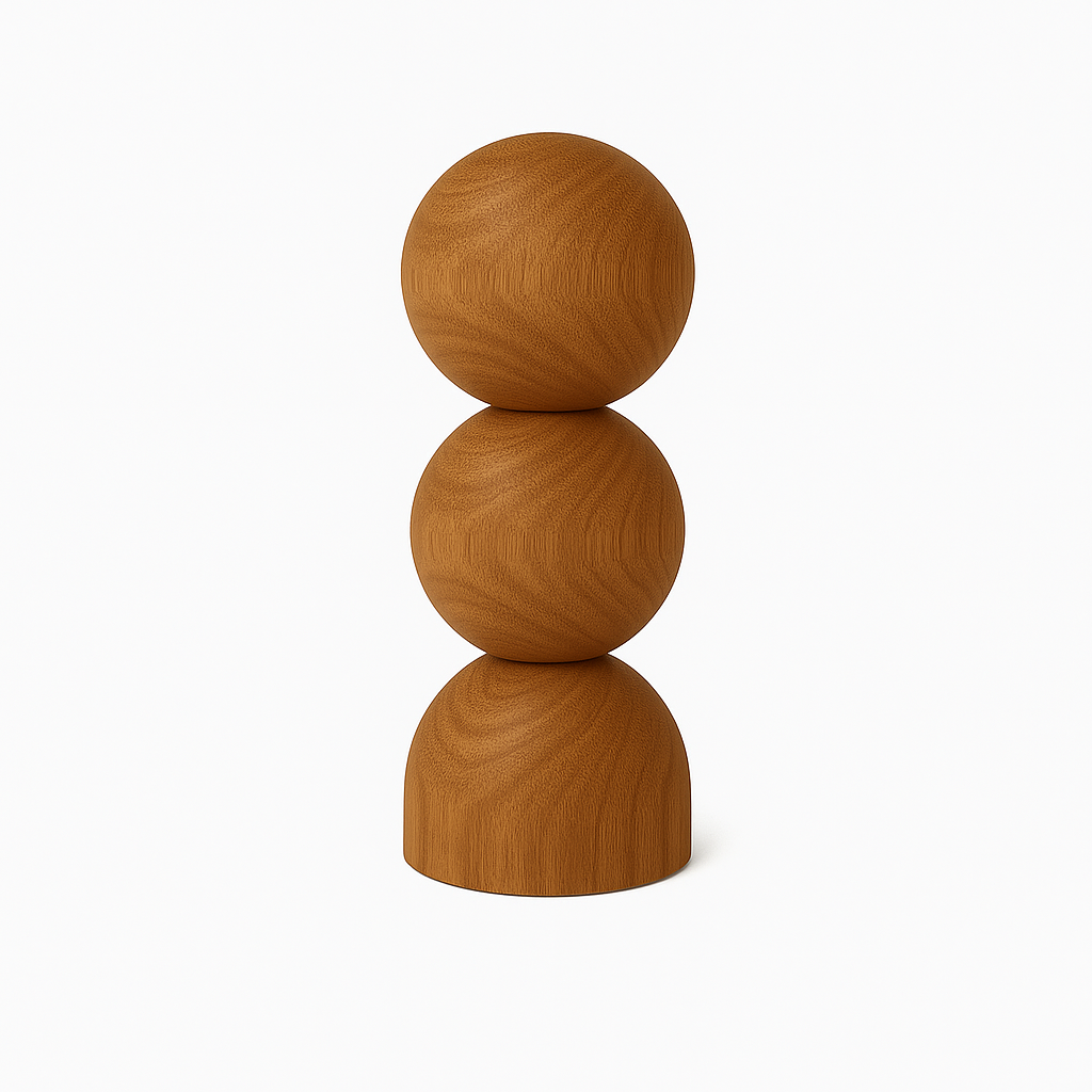 A coleção nasceu do estudo de geometrias que atravessam o trabalho do Estúdio, transformando blocos maciços em peças que são quase personagens — pequenos totens que unem design, arte e afeto. Um gesto simples, mas potente: revelar a poesia da madeira em sua pureza e força.