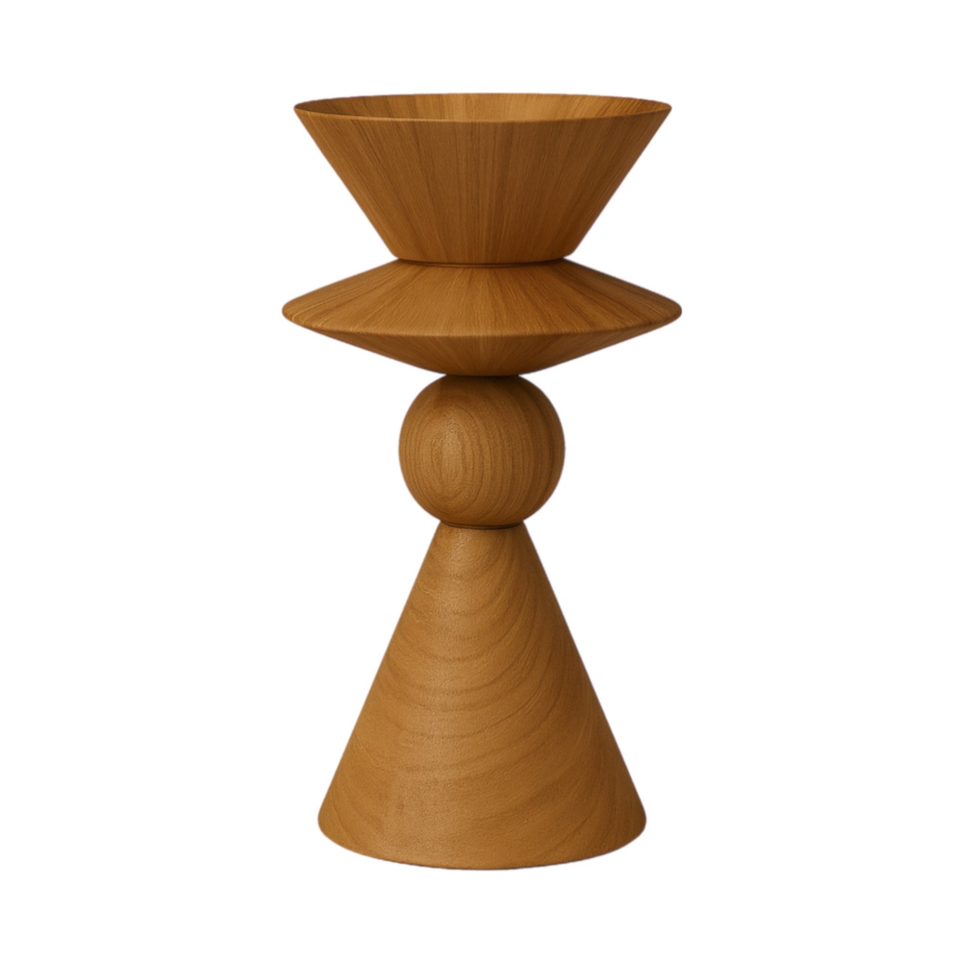 A coleção nasceu do estudo de geometrias que atravessam o trabalho do Estúdio, transformando blocos maciços em peças que são quase personagens — pequenos totens que unem design, arte e afeto. Um gesto simples, mas potente: revelar a poesia da madeira em sua pureza e força.