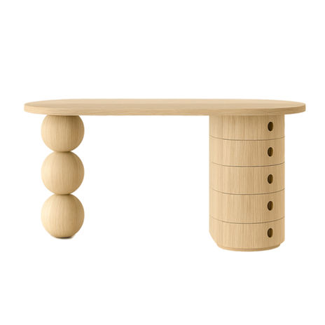 A intenção aqui foi buscar a simplificação: o gesto de dançar se torna uma sequência de volumes perfeitos (esferas) e um plano circular, retirando qualquer ornamento supérfluo e chegando à essência formal. Mais que um objeto funcional, a Escrivaninha Dança é um gesto escultural. Uma peça que celebra a conexão entre arte e design, movimento e pausa, modernismo e contemporaneidade.