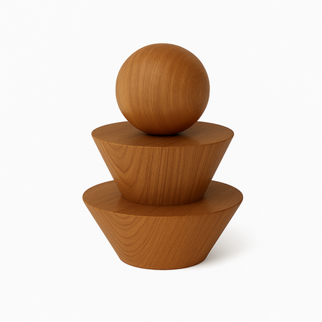 O processo de criação parte da observação das linhas puras e dos sólidos geométricos, mas busca sempre imprimir um caráter sensível. Não se trata apenas de blocos, mas de corpos que dialogam entre si e com o espaço, criando presenças silenciosas, quase rituais. Cada peça é única, com veios e tonalidades que revelam a vitalidade da madeira — seja pela densidade, pela textura ou pelo brilho natural que emerge sob o acabamento.